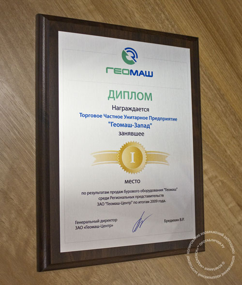 Наградной диплом на плакетке